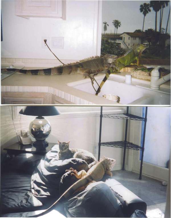 Once she got aggressive, progressed to eating large warm blooded animals, and decided my arm looked tasty, the ten foot Burmese python moved on and three green iguanas moved in. John, Godzilla, and Rodan were perfect pets. They slept on the seldom used pilot lights on the stove from 5:00 p.m. until 9:00 a.m. At 9:00 a.m. they moved outside to the deck where they worked on their tans, hummed show tunes, and snarfed down kale and blueberries with reckless abandon.