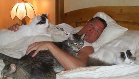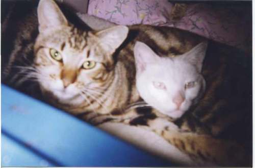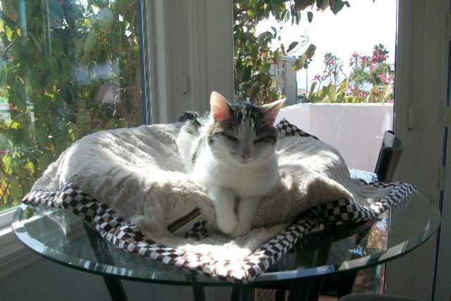 The love story began one summer morning in 1995 when I awoke to the soft gentle sound of “SCREEEEEEEEEEEEEEEE” in the room that is now Chez Mulligan’s surfboard room. In those days it was an open, overgrown garden. “SCREEEEEEEEEEEEEE”. Thought maybe the nine volt battery in the downstairs smoke detector had died of natural causes overnight. “SCREEEEEEEEEEEEEEE”. Rolled onto the floor, pulled aside the blinds, and saw four teeny tiny kittens hidden in one of the overgrown shrubs. Mama Cat (as we creatively named her that evening) was out making the acquaintance of more gentlemen callers for when the kittens left the nest. “SCREEEEEEEEEEEEE” is kittenspeak for “please may I have some kitten milk…I am famished.”