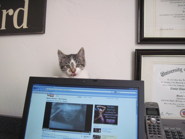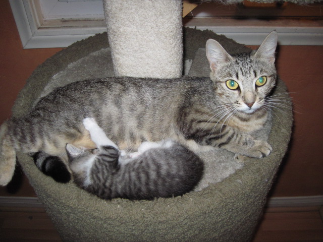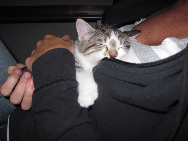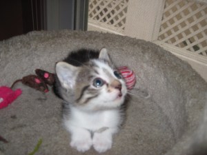 The Bonnie & Clyde litter: June 24 to August 28, 2010. Started with quite a few, some got adopted by God very early on….ended up with a great pair. They are available for adoption as of 4:40 p.m. today at the PetSmart in Point Loma, California. Take them as a pair and they’ll make you laugh like a hyena all day long. Scout’s honor.