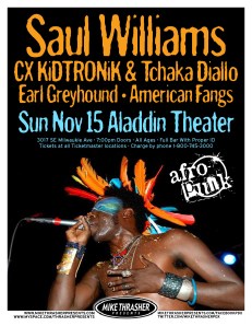 (Please right click on the link below to open the suggested background music to this evening’s gathering. A banging little song by Saul Williams. Very tasty tune.)