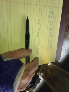 Dad was a two to three pack a day smoker, depending upon the day. Given that he was shackled to a wheelchair and unable to run either marathons or compete at an international level in triathlons for the last twenty years, none of us begrudged him his one vice. He was diagnosed with Stage 4 lung cancer in November, 2011 and took the diagnosis in the fashion with he raised the four of us. He laughed. When I was alone with him in the ICU he said: “Daniel…..when I get out of here, I think I’m going to finally quit smoking. But don’t hold me to that.” Then, he asked me for a dip. That evening, he also asked me to write him a fitting eulogy. One that was full of laughter, not evoking too many tears. One that explained how much he loved his wife, children and grandchildren without sounding too prideful or boastful. Most of all, he wanted everyone to walk out of the service smiling. The way my father went through life. I wrote the eulogy long hand on twenty plane flights for the next month and the eulogy was never read aloud. And it turned out pretty crappy, other than the swear words.