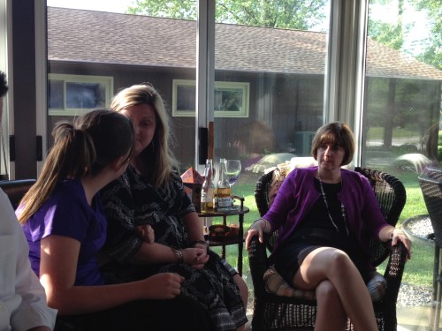 Mom rented the same place where Melinda and Moira had their wedding reception for the post-funeral, Irish gathering. They had to bus in alcohol from throughout Ohio and parts of West Virginia; however, by the end, everyone was satiated. Eventually. Then, mom, Melinda, Patti, Moira and I went back to mom and dad’s for what we thought would be a single cocktail before saying goodbye for another three to six months. No kids…..just the adults and our friends Mikki, Joan, and Chad. And Melinda and Patti’s husbands Mike and Ron. And we gave our nieces Brenna and Erin special “adult” passes for the evening after they promised to do “ear muffs” whenever we screamed “ear muffs”. Erin and Brenna also had to swear an oath of secrecy and sign it in lamb’s blood. Moira’s husband Steve will certainly receive the Nobel Peace Prize for 2012 for taking the kids with him and allowing us our special time with Moira.