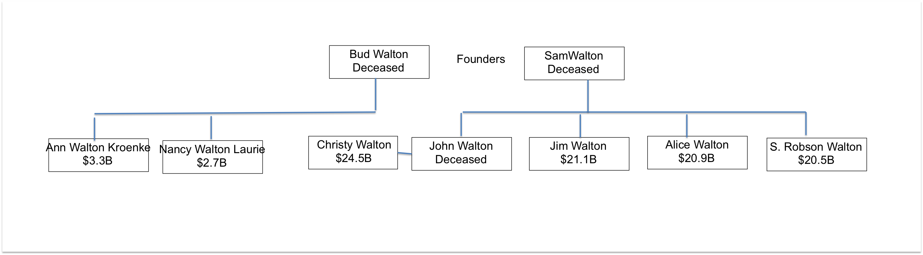 1: All fourteen members of the Walton family.