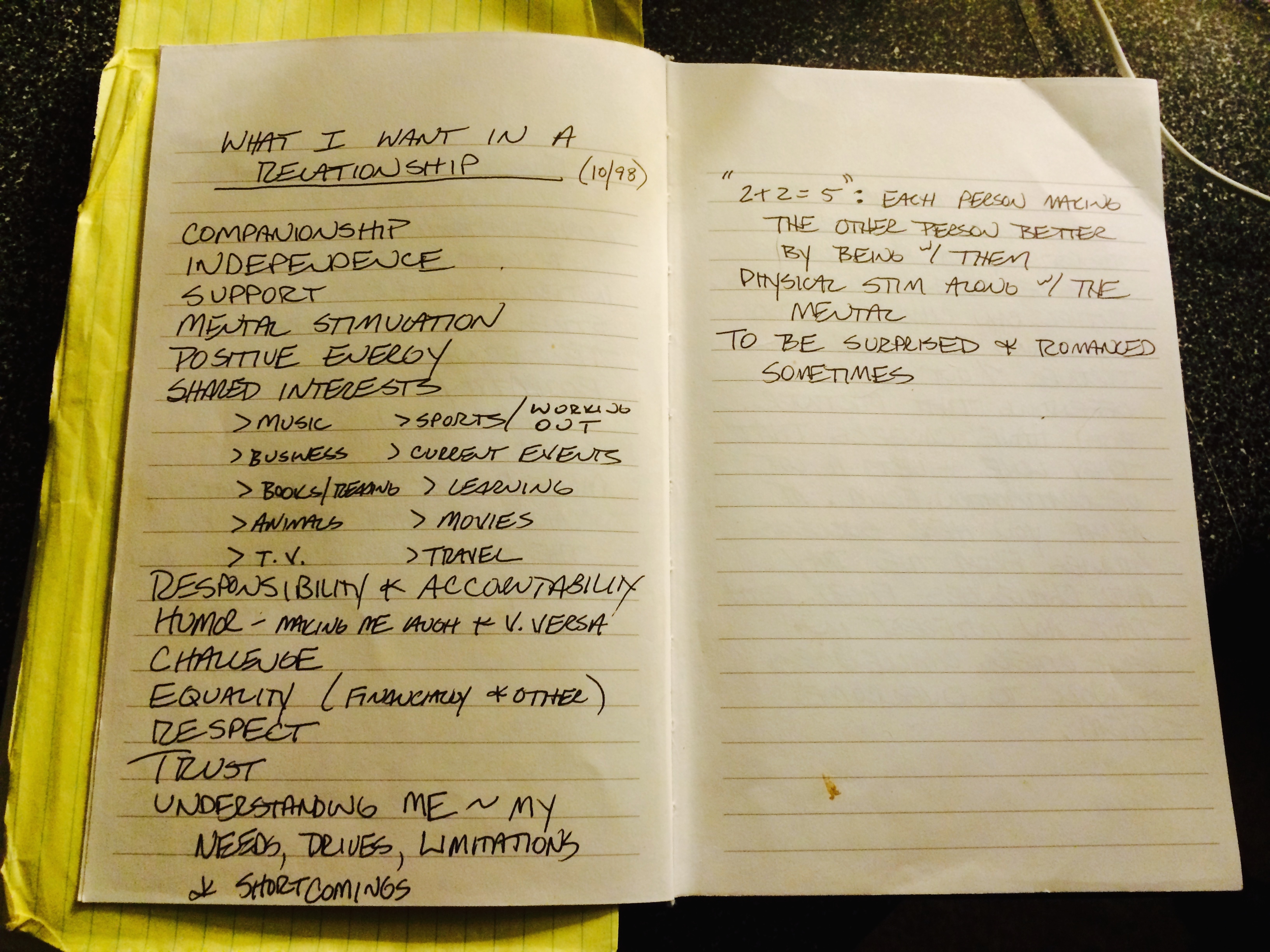 At the time, when I was without a doubt the worst relationship partner and an average to slightly above average friend….self absorbed 73% of the time and sleeping the remaining 27% of the time….. I thought it was a silly exercise.    She said…….in less than three pages, write out who you want to grow into one day”   I wrote this in 1999: