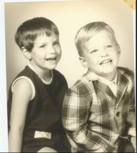 Certain mirrors make your face look better and certain colors make your eyes pop. I special ordered the mirror in the bathroom near the door through which I leave each day and chose the blue to make my eyes pop. I am nothing if not vain and like to line up the mental odds in my favor as often as possible. When I stop by this room for the final look before heading out the door, I walk out feeling sassy. Here’s the room color. Makes my baby blues go POP. It is a good color Under the “live, laugh, love” sign in the upstairs bathroom is a photo of one of my best college friends (and cheerleading partner) in college Jen, my father and me. On a bad hair day. This photo is one of my favorite photos. Jen died suddenly in January, 2008 leaving behind a husband and several wonderful children. Dad died eleven days ago.