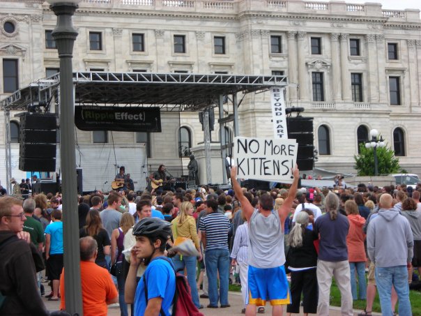 Over the years, Erin and I have had many conversations….fewer as we aged and I become more reclusive and aspbergian. These conversations started with Erin speaking some sort of rambling. child Ancient Sumerian and evolved, when she was twoish, to her dubbing me Uncle Dopey by pointing at me and loudly proclaiming “YOU’RE DOPEY!” That was fun. My favorite Erin conversation took place three years and eight months ago when she was in the middle of her first week away at college and I was driving from Chicago to Minneapolis, with stops in between for the Harley Davidson 105th birthday bash, the Bruce Springsteen concert at the Harley bash, and a Rage Against the Machine concert in Minneapolis the same evening Sarah Palin was accepting the Veep nomination at the 2008 Republican National Convention across the river in Saint Paul. And teasing the hippies at their war protests. Hippies are fun to tease. That was a most excellent week.
