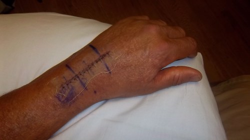 Midway through the church service, I looked two seats down and saw Patti sitting there, smiling and dry eyed. I nudged mom and said “tell the priest I’m not reading the eulogy when we get communion.” Mom held up the communion line (she was first) six minutes later, giving a very lengthy explanation on the 86’ing of the eulogy. Priest looked back at me: I winked, said “yep…what she says goes….no eulogy” and then made the “let’s get this show going” sign with my purple, casted arm. Believe I also pointed at a nonexistent watch while shrugging. Communion finished up without a hitch and we went and buried dad with a bagpiper man playing “Amazing Grace” on a beautiful seventy-three degree day in the Land of Cleve. It was a beautiful, Irish funeral.